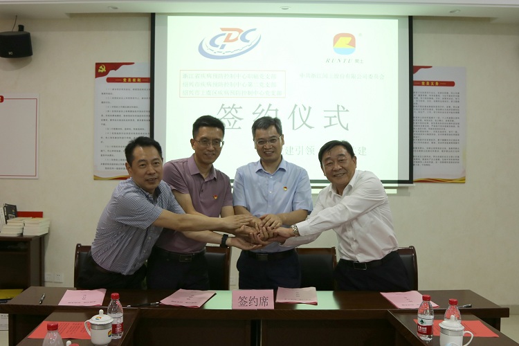 儀式上,浙江省疾控中心樓曉明副主任,紹興市疾控中心支部書記孟海濱,上虞區(qū)疾控中心書記方海平主任與公司黨委副書記阮興祥同志共同簽署四方聯(lián)建協(xié)議書。